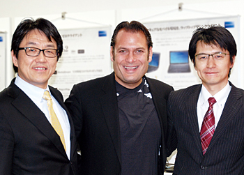 米ネクセンタ・システムズのターカン・マナーCEO(中)、ネクセンタ・システムズ・ジャパンの松浦淳日本法人代表(右)、ネクセンタ・システムズのパートナーであるアセンテックの佐藤直浩代表取締役社長(左) ●ファイナルフロンティア SDS技術によって、安価にストレージ環境を構築したとしても、「パフォーマンスや信頼性は大丈夫なのか」といった不安が残るだろう。
