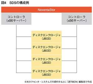 NexentaStorでは、ストレージ・コントローラとして、汎用的なx86サーバーが利用できる。また、記憶媒体を収容するディスクエンクロージャには、サーバーベンダーなどが提供するJBOD(Just a Bunch Of Disks:複数HDDをきょう体に収めたもの)を使用する。これらの汎用品をまとめて、「エンタープライズ・ストレージ」として利用可能にする「SDS(Software-Defined Storage)」が、すなわちNexentaStorであるということだ。ネクセンタ・システムズは、ソフトウェアだけを扱う会社だ。ストレージ専用OSを開発し、ハードウェアとソフトウェアの分離を実現したことで、エンタープライズ・ストレージ市場への参入を果たした。