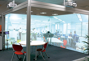 同社では、実際にワークスタイル変革を実現したライブオフィスを「ViCreA」と称して複数拠点に設置している。ViCreAでは、ビデオ会議システムやインタラクティブホワイトボードなどが設置してあり、持ち運びに便利なデスクエッジのプロジェクターも使って社員がさまざまな場所でコミュニケーションを図っている。赤松俊雄・ビジネスソリューションズ本部VC事業推進室室長は、「当社は、ワークスタイル変革を実現するコンセプトを『ハドルコンセプト』と称して、ミーティングしたい時にすぐにメンバーが集まってコラボレーションを行い、迅速に意思決定をした後はすぐに解散して仕事に戻るという動き方に取り組んでいる。この経験を生かして、当社の営業担当者が実践したことをユーザー企業に提案して案件を獲得している」という。移転のタイミングでオフィスをViCreAのように仕上げたいという要望が多く、「大企業を中心に、さまざまな業界で導入が進んでいる」と、赤松室長は手ごたえを語る。