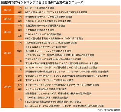 日本貿易振興機構(ジェトロ)ジャカルタ事務所によると、2014年時点でインドネシアの日系企業数は1496社。過去2年間で、約240社増えた。進出先地域は、人口の約6割を抱えるジャワ島に集中。ここ数年間で、日本のITベンダーの進出も勢いを増してきた。