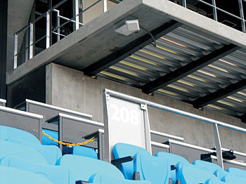 等々力陸上競技場で3月に完成した新メインスタンドにアンテナを設置した