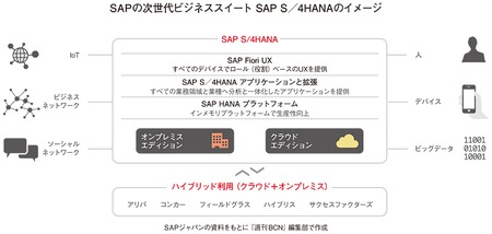 ●象徴的なトップベンダーの戦略 2015年を振り返ると、ERP/業務ソフト市場の非常に重要なエポックの一つが、ERP最大手である独SAPの次世代ビジネススイート製品「SAP Business Suite for SAP HANA(S/4HANA)」の登場といえよう。インメモリデータベース技術を採用したSAPのプラットフォーム「SAP HANA」上に構築することを前提に、イチからつくり直した。主力のビジネススイート製品としては、23年ぶりの全面刷新である。HANAによって、トランザクション処理、データ分析の両方を従来と比べて大幅に高速化し、経営の意思決定をサポートする情報をリアルタイムで提供することを可能にしたほか、UIも個々のユーザー単位の役割カットで柔軟に構築できるようにしたという。