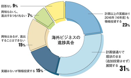 多くの日本企業が海外進出に取り組んでいるなか、ITベンダーも海外ビジネスの拡大に力を入れている。ビジネスはおおむね期待値通りで、2016年は現状維持というITベンダーが多い。