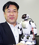PALRO(パルロ)を手にする富士ソフトの武居伸一事業部長 AIビジネスに詳しいNTTデータの風間博之・サービスイノベーションセンタ長は、「AIビジネスで、一般的にわかりやすいのはコミュニケーション系を含むフロントエンド領域。まずはフロントエンド系でAIを活用したほうが立ち上がりが早いが、Enterprise AI分野のほうが長期的にはビジネス規模は大きい」とみる。