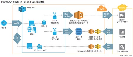 また、図にある通り、ジョイゾーではセンサからデータを取得して、AWS上に蓄積し、ルールに応じてデータをkintoneに渡すというソリューションも提供している。「kintone上で情報共有するにしても、IoTデバイスから得たデータをすべて送るのは効率が悪い。AWS上で処理をして、業務アクションに関係するデータを送ることを想定している」と、山下竜氏は語る。このシステムは、すでに野菜工場で活用されている。