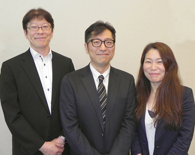 写真左から富士通の藤岡 学部長、岩津聖二部長、小松清美シニアマネージャー