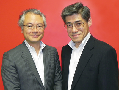 写真左から日立製作所の吉岡正泰担当部長、香田克也事業部長