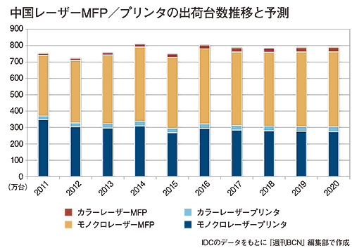 日系メーカーが牽引している中国のプリンタ/複合機市場だが、中国経済の「新常態」への突入も伴って、市場は成熟期に向かいつつあり、今後の大きな伸びは期待しにくい。IDCでは、2020年のレーザープリンタ/複合機出荷台数を15年比で5.2%増の787万6000台と予測している。また、地域によっては出荷台数の過半数を占めるといわれる政府購買も減少傾向にある。中国中央政府財務局は今年6月、プリンタ/複合機を含む事務機器・オフィス製品の購入金額の上限化、使用年限の長期化を発表した。政府系では、国産製品の導入が推進されていることもあり、日系メーカーは苦戦を強いられそうだ。さらに最近では、珠海艾派克科技が米レックスマーク・インターナショナルの買収を発表するなど、中国企業も攻勢をしかけている。現時点では脅威でなくても、長い目でみれば、競争相手の増加が予想される。
