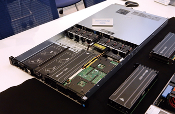 薄型ながら4枚のGPUカードを搭載できるデルの1Uサーバー
