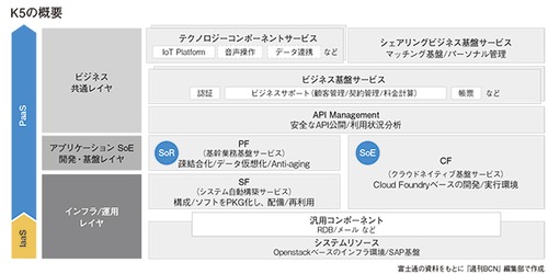 さらに、アプリケーション開発基盤の上のレイヤには、SoEを構築して新しいビジネスを始める顧客をサポートする、サブスクリプションビジネスのサポートサービス(ビジネス基盤サービス)や、シェアリングビジネスの基盤サービス、IoTのプラットフォームサービスやAIの「Zinrai」などのテクノロジーコンポーネントも順次整備している状況だ。SoEでの成長に向けては、ベンチャーのアクセラレータプログラムを始めるなど、K5を活用するサービサーのエコシステム拡大に取り組んでいるほか、従来の富士通パートナー、さらにはそれ以外の独立系SIパートナーなどにも協業の輪を広げ、K5ビジネスの裾野拡大を図っていく。
