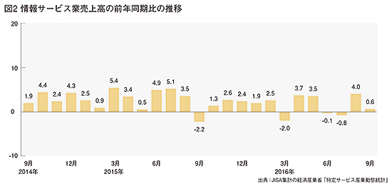 ●「デジタル」へのシフトを加速 情報サービス産業協会(JISA)の集計によれば、足元の国内情報サービス市場は堅調に推移している(図2参照)。だが、ビジネスの中身が大きく変わろうとしていることから、既存ビジネスだけで成長を持続させるのは、いささかハードルが高い。