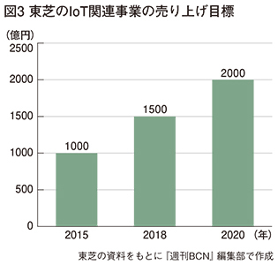 ポイントは、東芝のエネルギーシステムソリューション社やインフラシステムソリューション社、ストレージ&デバイスソリューション社のそれぞれのカンパニーと連携して、IoT/AIをグループ横断的にクロスセルしていく点である。よって、IoT関連ビジネスの売り上げ目標も、東芝インダストリアルICTソリューション社単体ではなく、東芝グループ全体で20年までに直近の2倍に相当する2000億円に拡大させることを掲げている(図3参照)。
