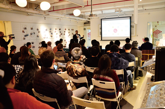 2月22日、上海市静安区のある商業ビルで、「XNode Pitching!」と題したベンチャー企業コンテストが開催された。プレゼンテーションをもとに、ベンチャー企業を審査・評価して表彰する催しで、優秀企業は資金援助などが受けられる。