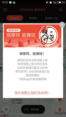 mobikeは利用したらお金をもらえる「紅包車」を開始