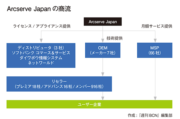 CA Technologiesから独立して3年目となるArcserve Japanは、「Arcserve」ブランドが国内市場で長い歴史をもち、販社経由でのビジネスが確立している。ディストリビュータを1次店としてリセラーからユーザー企業という既存の商流に加えて、新たに力を入れ始めているのがサービスプロバイダ経由でのビジネスで、「MSPパートナー」の拡大に積極的だ。そのため、既存の商流で提供しているものとは別のパートナープログラムを用意している。小高泰・営業統括部統括部長は、「バックアップサービスを低料金で提供したいというサービスプロバイダのニーズに応えた」としている。