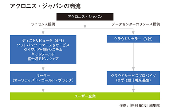 DCをもっていることを武器に、サービスプロバイダやクラウドサービスを提供したいベンダー向けに「Acronis Backup Cloud」を提供。クラウドバックアップを自社ブランド化してサービスの提供が可能となる。このようにアクロニス・ジャパンではクラウド関連に力を入れており、「クラウドサービスを提供する2次店を多く獲得していきたい」(金野隆・エンタープライズマーケティング部部長)との考えを示している。クラウドサービスの1次店に関しては、ソフトウェアの提供で1次店とほぼ同じディストリビュータとパートナーシップを組んでいる。