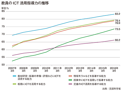 2013年に閣議決定された高度情報通信ネットワーク社会推進戦略本部(IT総合戦略本部)が掲げる「世界最先端IT国家創造宣言」では、IoT、ビッグデータ、AIなどを業務やビジネスに生かすことができる人材を育成するため、教育環境自体のIT化が提唱されている。初等中等教育段階からIT化に取り組み、学校の高速ブロードバンド接続、一人1台の教育用の情報端末配備、電子黒板や無線LAN環境の整備、デジタル教科書・教材の活用などを推進し、児童/生徒の学力の向上とITリテラシーの向上を図る方針だ。