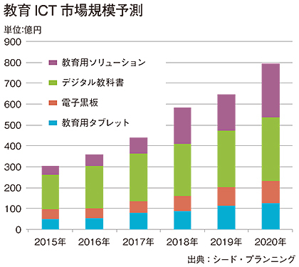 今後、教育現場でのコンピュータや電子黒板、デジタル教科書、教育用ソリューションはどれだけ普及するのだろうか。調査会社シード・プランニングのリサーチ&コンサルティング部 エレクトロニクス・ITチーム、原健二主任研究員は、「文科省は20年に一人1台のタブレット配備よりも、教育とAIに注力しており、教育用タブレットの出荷台数の予測は15年時点より下方修正した」としつつも、「教育ICT市場は右肩上がりで伸びており、20年には795億円になる」という見解を明らかにした。