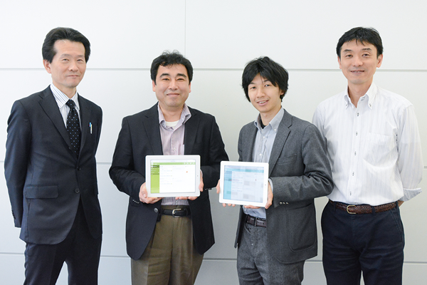 左からアプリケーション&コンテンツサービス部の服部陽一担当課長、アプリケーション&コンテンツサービス部アプリケーションサービス部門第五グループの吉原健次主査、古尾淳氏、第六グループの田村憲担当部長