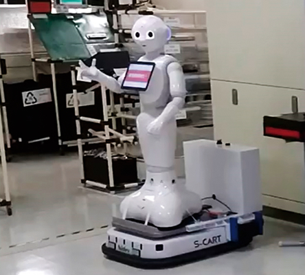 Pepperが担うのは、生産ラインを走り、センサで機械の異常を検知したり、温湿度を測定したりする作業。さらに、夜勤者が身に着けた活動量計の数値を分析し、体調不良やラインのトラブルに対応する見守り作業もこなす。当初は5台からスタートし、現在は8台に増やした。