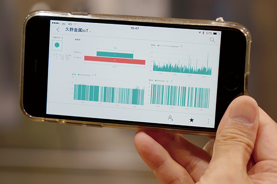 同社は、研磨機にセンサを設置し、稼働時間や稼働率、研磨液の温度などを収集。これまでは機械の音や発生した火花など、職人芸に頼っていたデータをリアルタイムでグラフ化し、クラウドを経由してスマートフォンなどで見られるようにした。