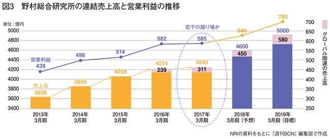 「17年3月期は一息ついてしまった」と反省の弁を述べる此本社長だが、足元をみると売上高が再び成長に向かう手応えは感じているようだ。具体的には、従来強みとしてきたNRI独自の共通利用型システムである“業界標準ビジネスプラットフォーム”のユーザー数や適用業務の範囲が着実に拡大していることに加えて、上述のビジネスITの領域で新規ビジネスの立ち上がりが期待できること。さらには海外M&Aなどを含めたグローバルビジネスの拡大によって、中期経営計画で目標に掲げる19年3月期、連結売上高5000億円、営業利益700億円の達成に強い意欲を示す。