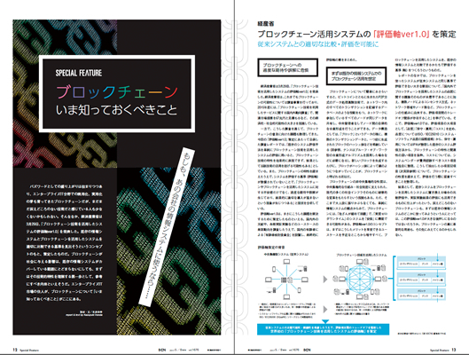 PinTechというワードはまだ本紙で登場していないが、FinTechの関連ワードである「ブロックチェーン」はニッチな分野での活用においても期待されている。本紙では5月8日号(Vol.1676)の特集「ブロックチェーン いま知っておくべきこと」でブロックチェーンを取り上げた。特集の軸となっているのは、経済産業省が発表した「ブロックチェーン技術を活用したシステムの評価軸ver1.0」。既存の情報システムとブロックチェーンを活用したシステムを適切に比較できる基準を見出そうというコンセプトのもと、策定したものだ。ブロックチェーンが社会に与える影響は未知数だが、まずはその技術的特性を理解する第一歩として、参考にすべき内容になっている。