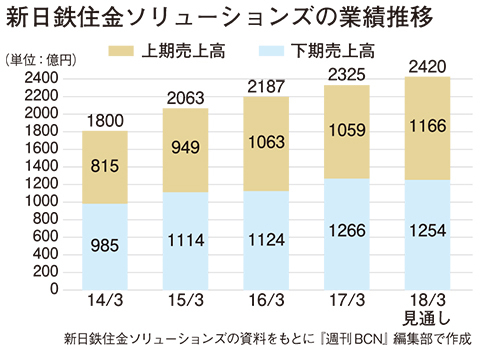 同社の3か年中期経営計画は、今年度(18年3月期)が最終年度であることから、18年度以降、できるだけ早い時期に既存事業ベースの成長での年商5000億円達成を目指すとしている。