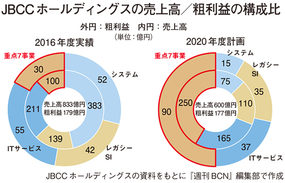 同社は利益重視へと戦略的に経営の舵を切っている。20年度までの4か年中期経営計画では、クラウドやSoE(価値創出型システム)、セキュリティなど、高収益が見込める7つの重点事業を設定。これら重点7事業の売り上げを20年度に直近の2.5倍の250億円、粗利益を3倍に相当する90億円に増やす目標を掲げている。