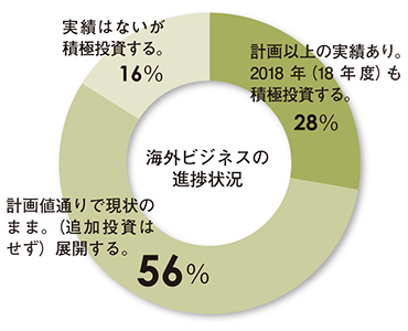 17年の海外ビジネスの実績について聞くと、「計画以上の実績あり。18年(18年度)も積極投資する」が28%、「計画値通りで現状のまま。(追加投資はせず)展開する」が56%、「実績はないが積極投資する」が16%という結果になった。日系企業の海外現地法人を対象にしたビジネスを中心に、粛々と事業展開していくという企業が過半数を占めたが、17年に計画以上の実績を残し、18年も積極的に海外ビジネスに投資していくとしたベンダーが3割近くにのぼったのは特筆すべきポイントだといえよう。また、現時点では実績がなくても、海外市場に新たな成長の糧を求めようとするベンダーも決して少なくないことがわかる。