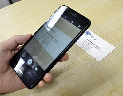 「QY name card」のイメージ。アプリで名刺をスキャンするだけでデータを登録できる