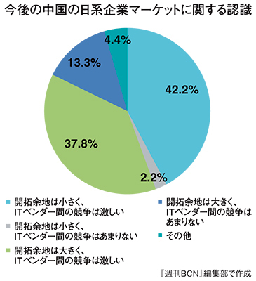 今回のアンケート調査では質問に盛り込まなかったが、この1年間の取材を通して、はっきりと感じたことがある。それは、中国ビジネスの位置づけそのものを見直そうとするITベンダーが増えていることだ。ある総経理は、「将来的に中国で存在感のある企業になることだけが本当にゴールなのか」と話す。日系ITベンダーの多くは、将来はローカル企業の開拓で大きな成果を収めることを目標に掲げている。しかし、実際に成功している例はほとんどない。この状況は、記者が中国に赴任した2014年3月から変わっていない。