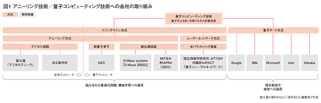 デジタルアニーラは、従来のコンピュータと同様のデジタル回路であるため、一般的なサーバールームやデータセンター(DC)に設置でき、安定して使えるところが最大の強み。量子コンピュータのブームに乗った製品だが、“量子コンピュータではないアニーリングマシン”というところがポイントとなる(図1)。