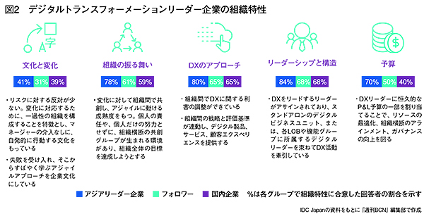 そして、最大の課題は、予算措置に対する意識の低さだ。調査によると、DXに関する予算について、組織特性として合意した企業は、アジアのリーダー企業では70%、アジアのフォロワー企業では50%であるのに対して、日本の企業は40%にとどまっている。これはアジアのリーダー企業との比較ではなく、アジアのフォロアー企業と比べても、日本の企業が遅れていることを示している。