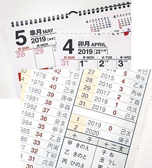 一部が元号抜きで印刷された2019年版のカレンダーや手帳