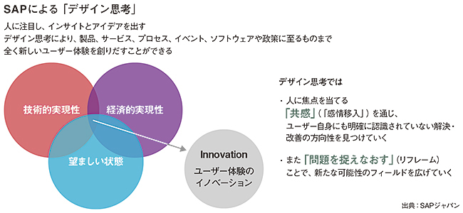 プラットナー氏は2004年、同社の年次カンファレンス「SAPPHIRE」へ向かう際に乗った飛行機の中で、デザイン思考を取り上げた雑誌記事を読んだ。記事は、デザイン思考で有名なIDEOの創設者の1人で、スタンフォード大学でデザイン思考の教育も行うデビッド・M・ケリー氏が書いたもの。その内容に大きく感銘し、SAPPHIREで予定していたプラットナー氏の基調講演を急きょ、デザイン思考の話に変更するほどだった。その後、SAPはデザイン思考を社内に取り入れる。さらにプラットナー氏は私財を投入し、デザイン思考やイノベーションの拠点となるスタンフォード大学の「d.school」を開講する。