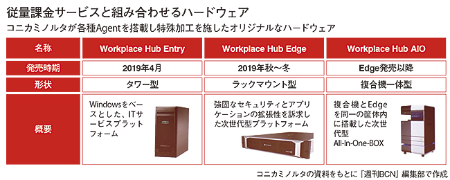 コニカミノルタジャパンは、複合機と従量課金サービスを組み合わせた「Workplace Hub」を、19年4月から国内で提供する。ストア機能(マーケットプレイス)を持たせることで、必要なアプリケーションをダウンロードして利用できる。ストアが提供するアプリケーションは自社開発のものだけではなく、サードパーティー製も含まれる。