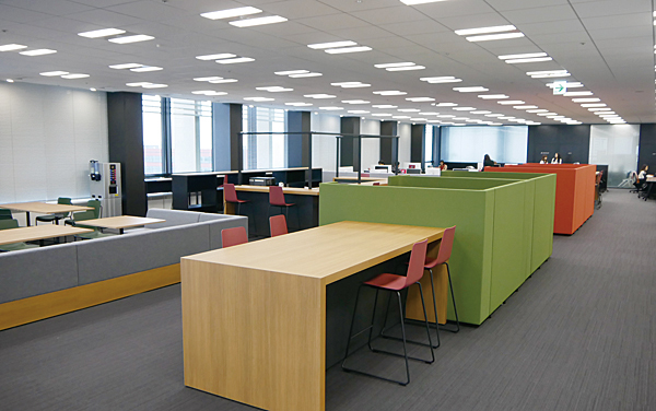 まず目についたのは、フリーアドレスで働く社員の姿。フリーアドレス制の採用は、同社としては初の試みだ。