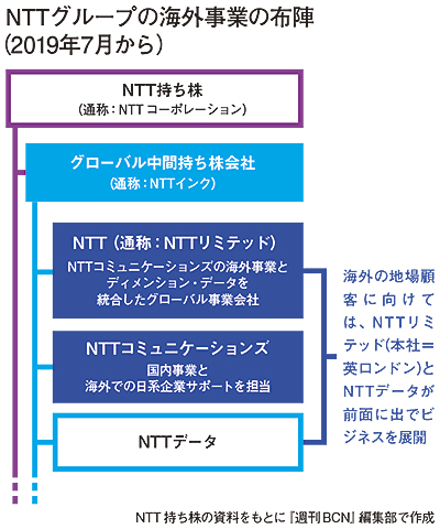 NTTグループは、7月からNTTコミュニケーションズの海外事業とディメンション・データを統合した新生NTT(通称:NTTリミテッド)の営業をスタートさせる。ディメンション・データが多くの顧客を持つ英国ロンドンに本社を置き、初代CEOにはディメンション・データのジェイソン・グッドールCEOが就任する予定だ。長年親しまれてきたNTTコミュニケーションズのブランドは、海外では新生「NTT」に集約され、NTTコミュニケーションズは国内顧客と海外に進出した日系企業向けにサービスを提供する事業会社となる。