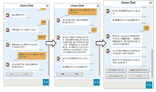 LISACOは、導入企業の従業員一人一人に60問の質問に回答してもらい、その結果を基に各々の行動特性をタイプ別に分類する。行動特性のタイプは平常時と高ストレス時で変化することもあり、それぞれの結果も分かるという。エンドユーザーは、自身の行動特性の分析や年齢別のアドバイスなどを受けることができる。さらにLISACOは、任意の個人同士のコミュニケーションを円滑にするためのアプローチ方法なども提案してくれる。例えば自分と部下、自分と上司、もしくは部下とその部下など、個人ごとの行動特性分析を基に、二者間のコミュニケーションで留意すべきポイントを表示する。また、管理職の中途採用候補者の適性確認機能や、行動特性分析結果のデータベースとリンクして職場でのコミュニケーションのアドバイスをしてくれるチャットボット機能も提供している。チャットボットのAIエンジンには「IBM Watson」を採用している。
