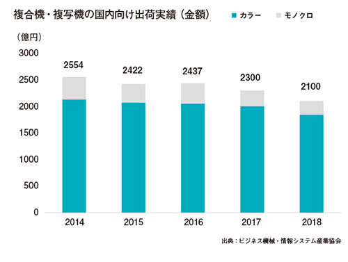 長年叫ばれてきたオフィスのペーパーレス化は、コストの削減や文書管理の統制強化といった管理側主体の発想だったため、必ずしも多くの企業には広がらなかった。しかし、昨今の働き方改革で導入が広がっているモバイル端末やリモートワークは、従業員にとってもメリットのある仕組みであり、それを実現するには一定のペーパーレス化が避けられない。印刷機としての複合機・オフィスプリンタの需要縮小は、いよいよ不可逆な段階に入った。
