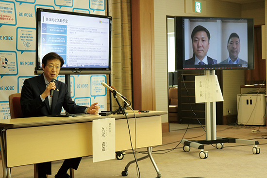 日本マイクロソフトとの協定について会見する神戸市の久元喜造市長