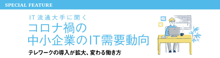 新型コロナウイルスの感染拡大をきっかけとしたテレワーク導入の波は、大企業だけでなく中小企業にも押し寄せた。テレワークに活用できるIT製品・サービスの需要も急増。IT業界でかねてテーマとなってきた「働き方改革」のビジネスにも急激な変化が起きた。中小企業市場ではどのようなIT商材の販売が好調だったのか。また今後の中小企業の働き方の変化をどのように見据えて提案を行っていくのか、IT流通大手各社に聞いた。(取材・文/指田昌夫 編集/前田幸慧)