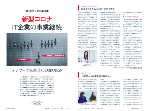 本紙でもこの春以降、リモートワークを中心とした新しい働き方に取り組むための話題が急増。4月には、緊急事態が宣言される前からリモートワークに切り替えた先進企業の事例を特集した(4月13日・1821号掲載「