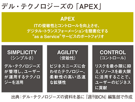 そのうえで、ハードウェア製品の利用をas a Service化する「APEX」がある。これは従来のCAPEX(設備投資)をOPEX(従量課金の経費)として利用できるようにするものだ。APEXによるITインフラのOPEX化は、国内でも関心が高まっている。