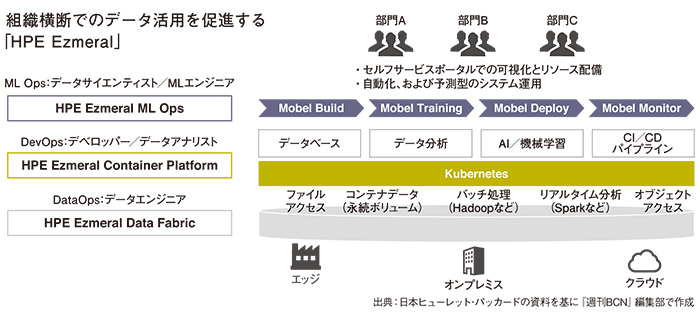 一方、HPE独自のコンテナプラットフォームである「HPE Ezmeral」は、「AIや機械学習システムの開発に特化したプラットフォームソフトウェア」として位置づけている。オンプレミスでEzmeralを活用した柔軟なITインフラ環境を構築した場合は、AIや多様なアプリケーションを動かし管理するためのソフトウェアが必要となる。そのために「ML Ops」など、AI、機械学習に特化した機能を盛り込んだソフトウェア群の提供も始めている。とはいえ、具体的に多様なツールやライブラリを組み合わせてAI、機械学習の技術を活用する仕組みの構築については、その領域を得意とするパートナーが主に担うべきところと認識しており、パートナーとのエコシステムでユーザーのDX実現を支援することになる。