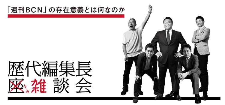 4度目の緊急事態宣言解除が台風16号も連れてきてしまった10月1日、金曜日。東京・神田のBCNオフィスに週刊BCN歴代編集長の面々が集まった。創刊40周年の節目は、温故知新の大切さを改めて胸に刻む絶好の機会。BCNを離れた後も、それぞれの分野で活躍する先輩に話を聞かねばなるまい。とはいえ、いずれも強烈なパーソナリティーの持ち主である。果たして場を御しきれるか、自分が企画しておきながら甚だ不安な気持ちで先輩方の到着を待っていた、週刊BCN編集長・本多。嵐の中、歴代編集長座談会、もとい雑談会が幕を開ける――。