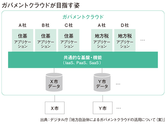 このようにアプリケーション側の仕様統一に向けた動きに合わせて、インフラ側の共通化を進めようとする取り組みが、ガバメントクラウドの整備である。