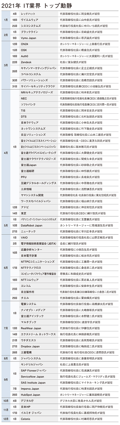IT業界に大きな影響を与え続けている新型コロナ禍。プロジェクトの遅延や一時保留といった打撃があった一方、テレワーク環境の整備など特需につながった面もある。昨年がコロナへの対応に迫られた“混乱期”だったとすれば、今年はデジタル変革に向けたアクセルを再び踏み始める“再始動期”だったと言えるだろう。2021年のIT業界がどのように揺れ動いたのか、週刊BCNの紙面を通じて振り返る。