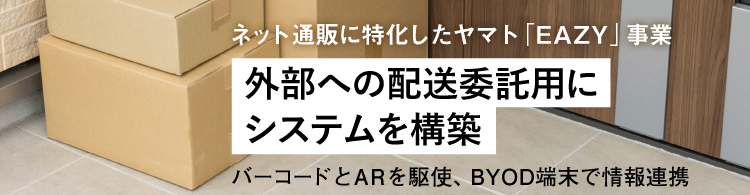 ヤマト運輸のネット通販向け宅配サービス「EAZY(イージー)」では、従来の“宅急便”とは異なる新規の情報システムを構築している。増え続けるネット通販に対応するためEAZYでは外部の協力会社を積極的に活用しており、情報システムも協力会社の従業員の手持ちのスマホと連携する「BYOD方式」を採用。ヤマト運輸の社内のシステムと協力会社のBYODの端末との情報連携に際しては、複数バーコードの高速・高精度の読み取りとARで、スマホと相性のよいスイスのスキャンディットの技術を組み合わせることで、使い勝手のいいシステムに仕上げた。